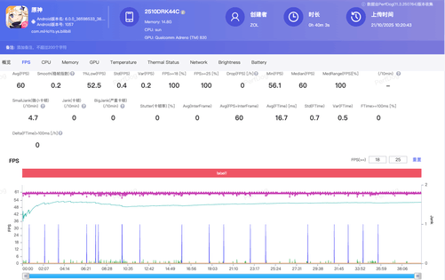 实测《原神》40分钟极限测试中,平均帧率60帧,机身最高温度仅41.3℃。相比同平台的大屏旗舰温度更低、帧率更稳,尤其1%low帧表现更优,几乎无掉帧感。