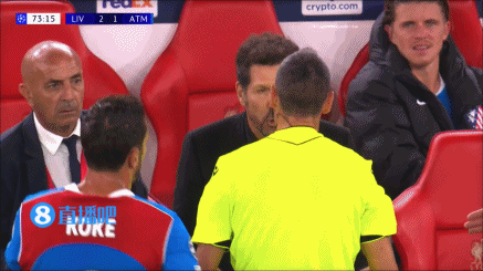 第74分钟,西蒙尼对裁判喋喋不休吃到黄牌。↓