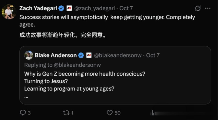 「新闻里那些越来越年轻的创业者不是偶然」,Yadegari认为创业成功的故事将趋于年轻化。